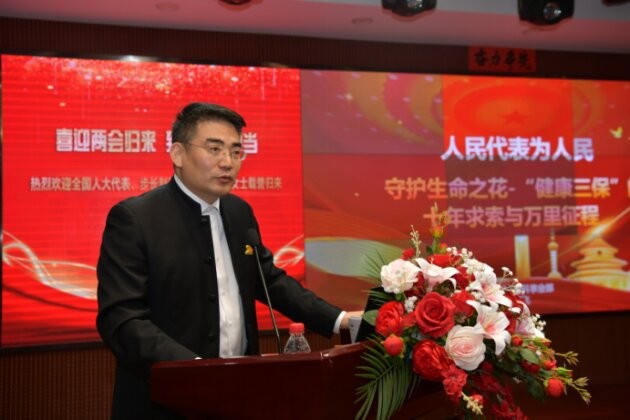 随后,事业六部总经理何鹏飞上台发言。何总首先分享了赵步长教授发表于《中国妇女报》两会“三八”特刊的文章——《“健康三保”的十年求索与万里征程》,随后重点解读王建六博士“在春暖花开中守护女性生育健康”、赵瑞华教授“以中医智慧守护女性生命之光”、冯晓玲教授“让‘防’大于‘治’的理念扎根基层”等核心理论,深化了全体员工对女性健康保障专业知识的认知与理解。
